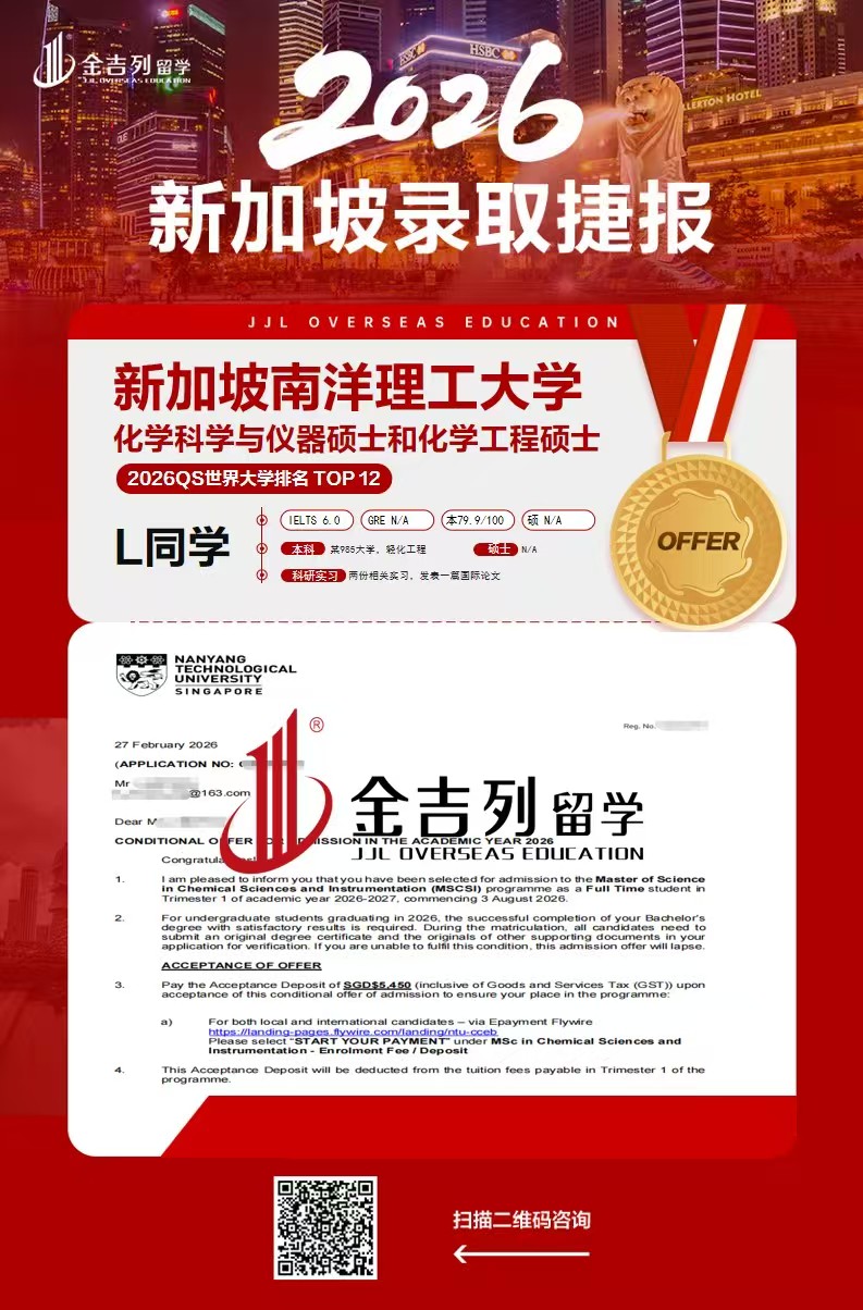 新加坡南洋理工大学化学科学与仪器硕士和化学工程硕士录取案例