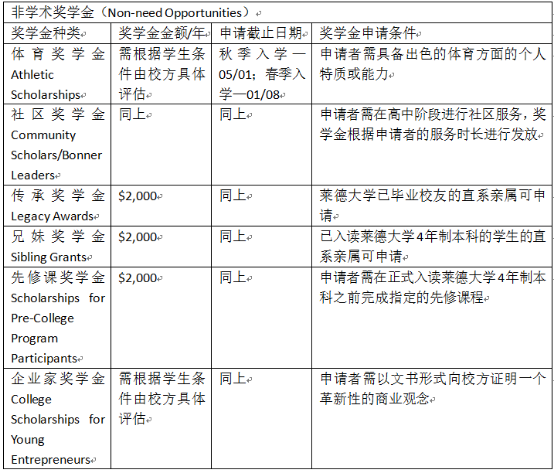 莱德大学本科新生非学术奖学金( Non-nee Opportunities)