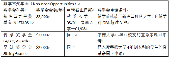 莱德大学本科转学非学术奖学金( Non-nee Opportunities)