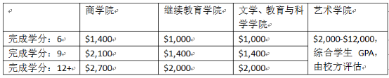 莱德大学研究生奖学金为学术奖学金,无需学生主动申请,校方会自动审核学生的学术成绩,根据学生已修得学分颁发奖学金,当然,不同学院对于奖学金的具体发放金额也不同,具体参考如下: