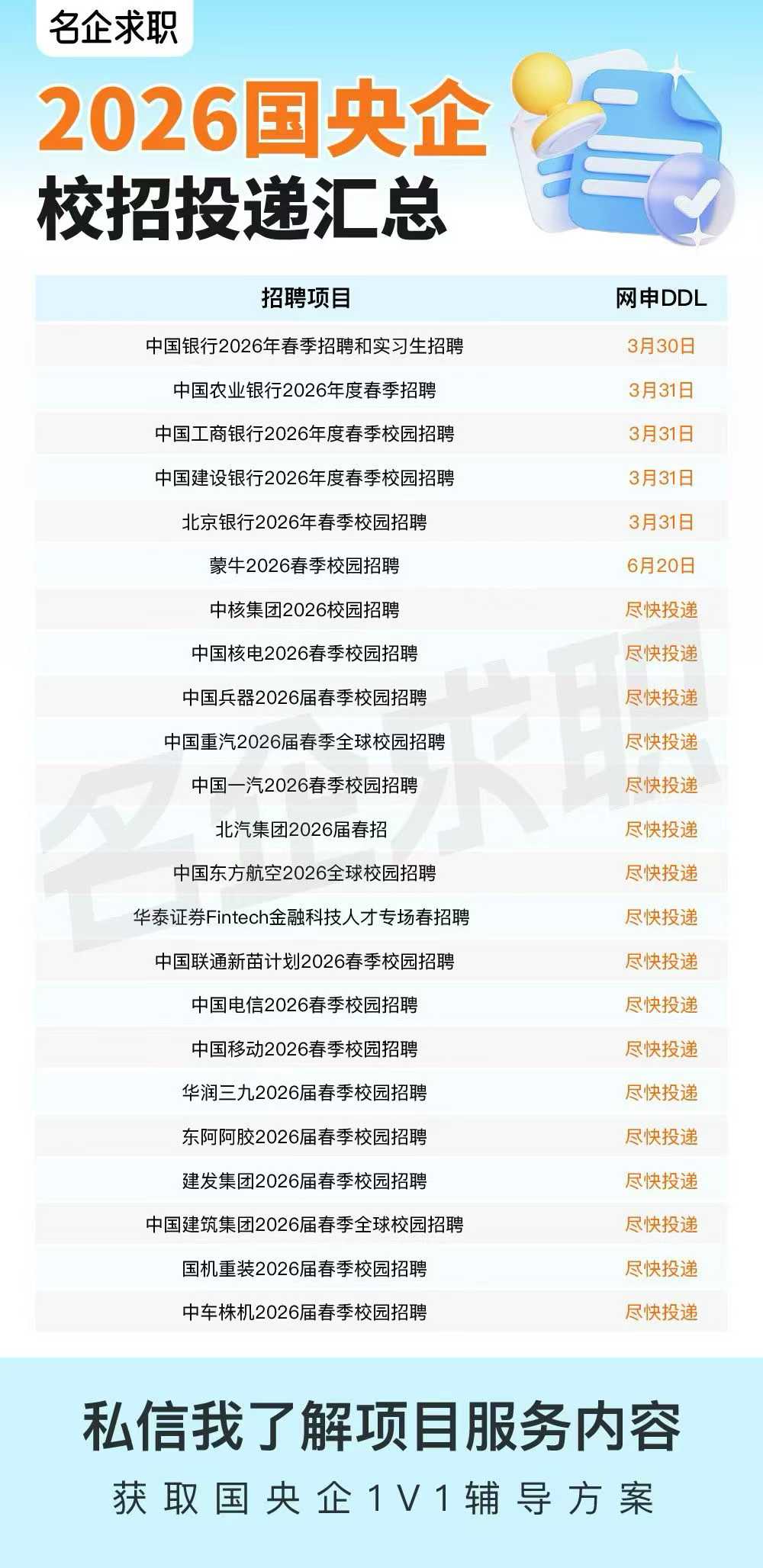 四大行+各大央企春招通道已开启,部分DDL已到3月底,还有大量岗位“尽快投递”通道开放。