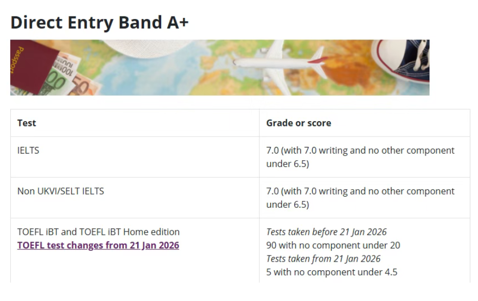 UCL针对2026年1月21日之前参加的托福iBT考试,只要在两年有效期内,仍可按照旧版分数要求提交,满足条件即可被认可!