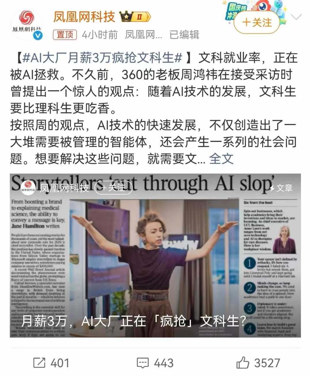 AI大厂月薪3万疯抢,周鸿祎直言:文科生比理科生更吃香!