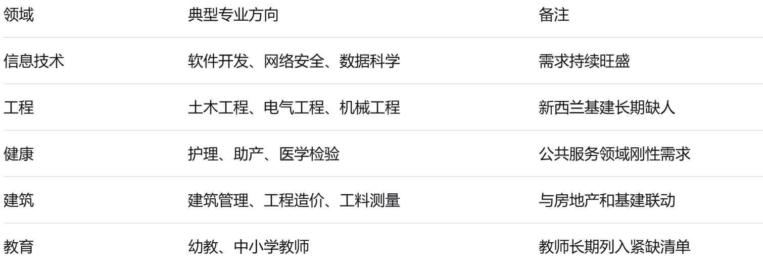 新西兰移民局发布的“绿名单”(Green List)直接指向国内长期紧缺的职业领域。对于留学生而言,选择“绿名单”相关专业,意味着毕业后就业和定居的路径更加清晰。