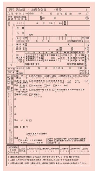 如果违反相关规定,日本警察会开出蓝色单据,这个“蓝色罚单”的正式名称是“交通违章告知书”。