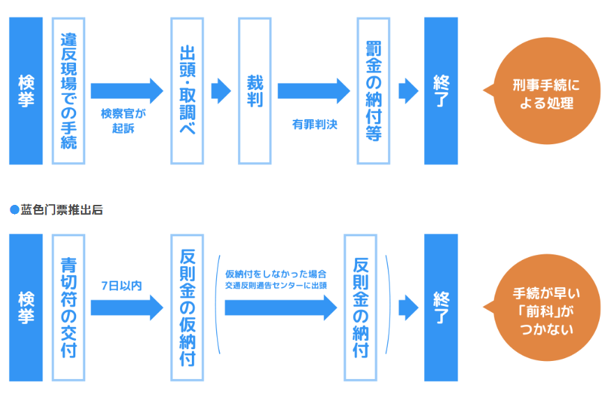 蓝色罚单:针对相对轻微的违章(违规行为)开具。如果规定时间内到银行或邮局缴纳“罚金”,就不会进入刑事审判程序,也就不会留下所谓的“案底(前科)”。
