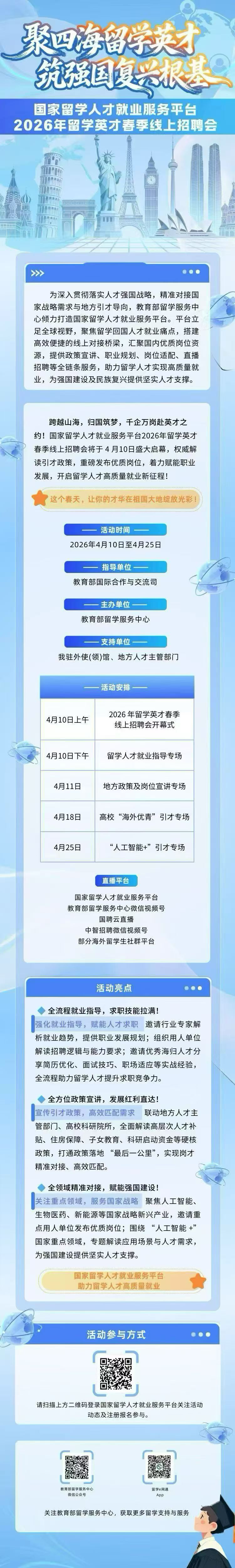 教育部留服2026留学英才线上招聘会,仅留学生可投的5000+专属岗位,4.10-25开启