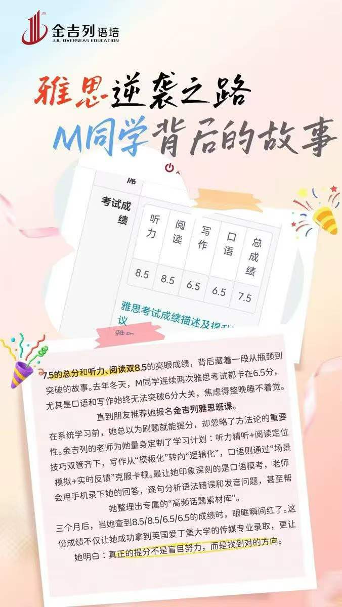 M同学在金吉列雅思班课实现逆袭,成功拿下爱丁堡大学录取!