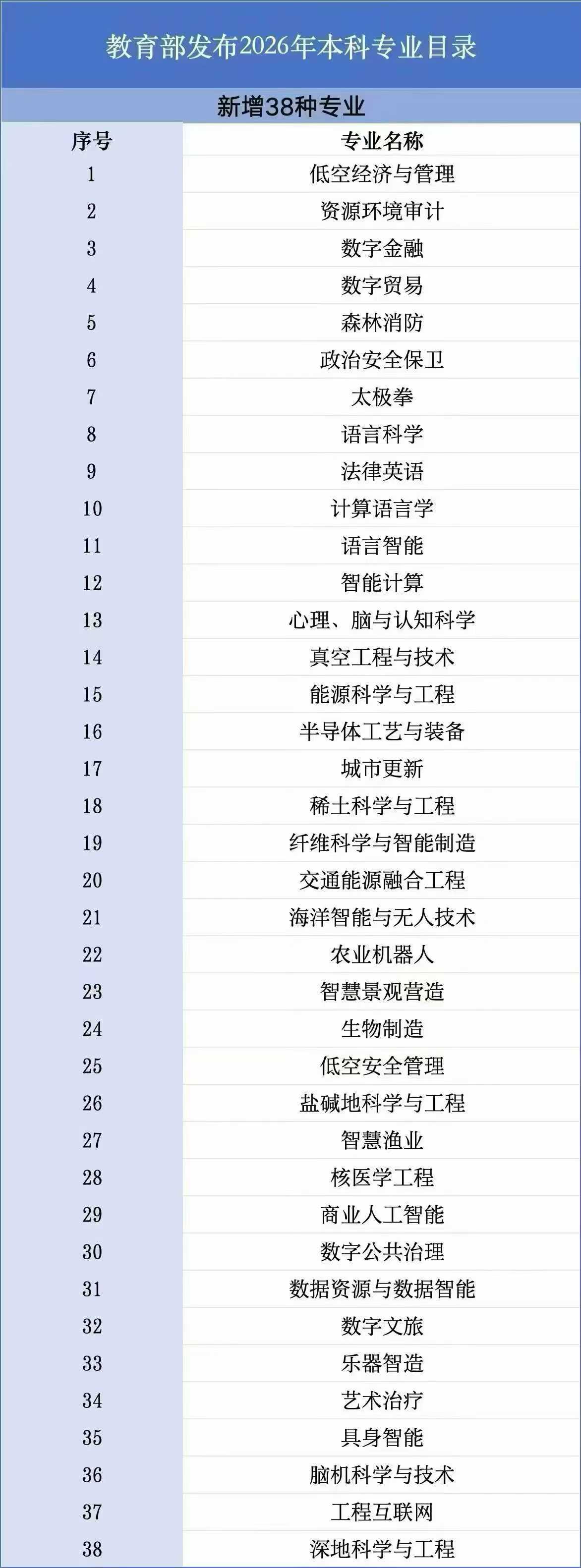 38个新专业的落地,不仅是高校专业体系的迭代,更是国家人才培养战略的“风向标”。从核心技术攻关到民生服务升级,这些专业将为我国产业升级和社会发展注入新动能。对考生而言,选择这些新专业,意味着站在时代风口,与国家战略同频共振,未来可期。