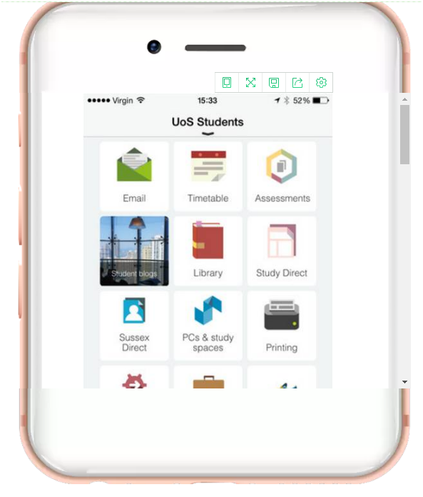 在移动通讯如此发达的 21 世纪,萨塞克斯大学跟随时代潮流,将校园各方面都智能化一体化了! 打开这个网址, 你就可以下载手机软件 SussexMobile. 这个多功能的软件将校园的信息都整合在一起,让你可以随时查到课程表,图书馆存书和自习室空位,查看邮件等等。