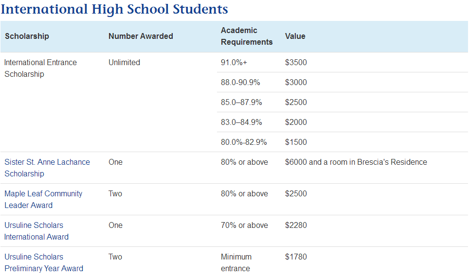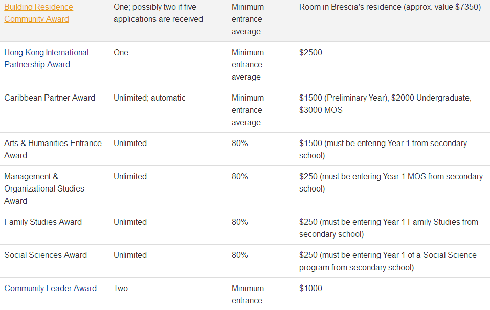 St.Anne Lanchance姐妹奖,需学生入学前提交表格自行申请,满足条件者,将获得6000刀以上的奖学金,外加一间免费的学生宿舍使用权1学期。
