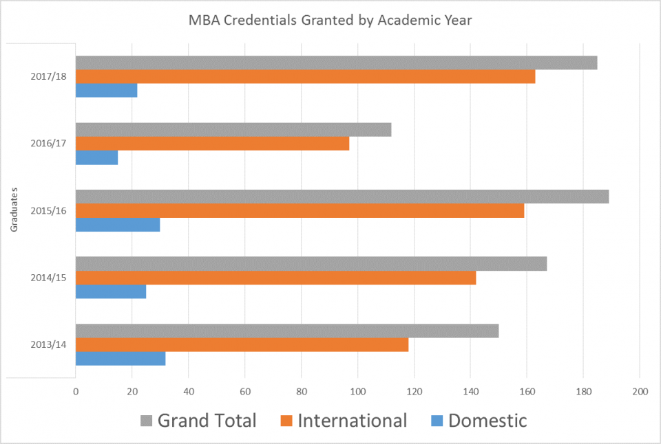学生毕业时将同时获得两个学位, 一个是温哥华岛大学颁发的工商管理硕士学位( MBA ),另一个是英国赫特福德大学颁发的国际商务理学硕士学位( MscIB ),这一优势将帮学生在竞争日趋激烈的商业世界早日走向成功。已获得商科(包括经济、管理、贸易、财会专业)学士学位的本科毕业生(包括应届生)只需要在温哥华岛大学学习 14 个月的课程,成绩合格就可以毕业。