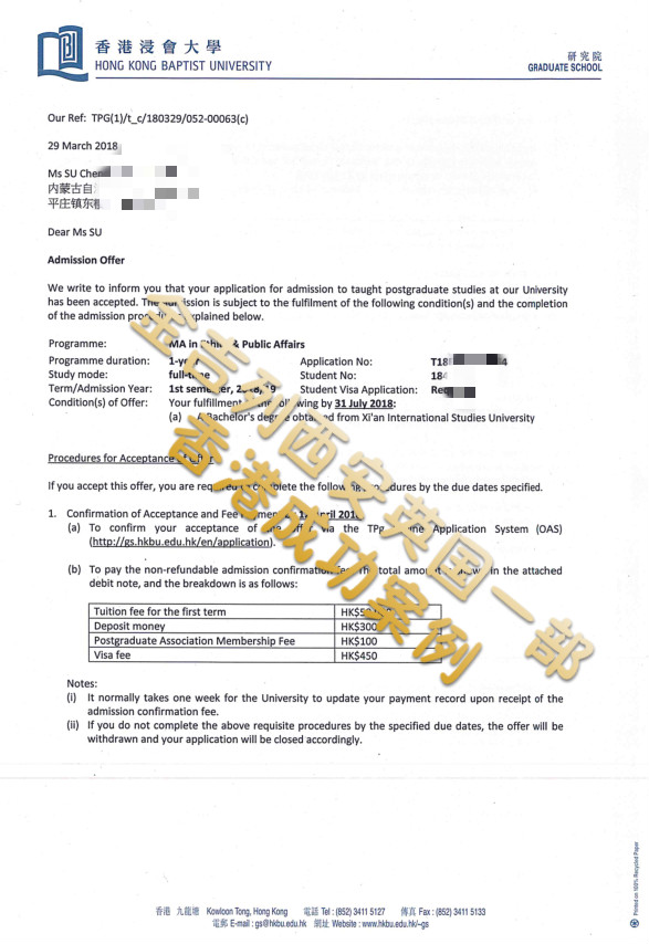 恭喜金吉列留学西安分公司,英国一部石老师的学生苏同学同时拿到香港浸会大学和英国利兹大学的无条件录取。