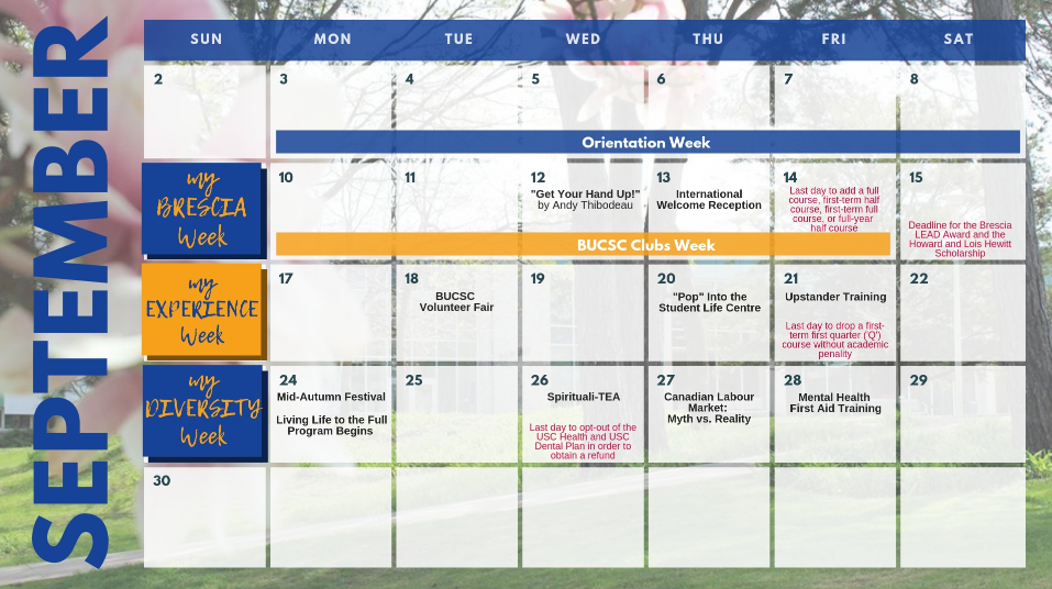 布雷舍尔女子大学学院的活动与俱乐部相当之多,在这方面资源与母校共享,上图则是新生第一个月的日程表。