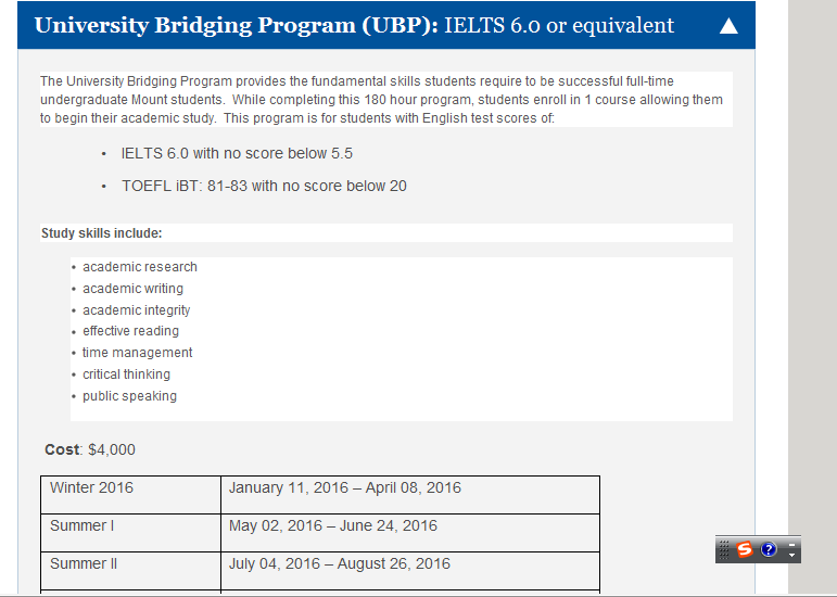 2. UBP 大学桥梁英语课程; 要求雅思 6.0 ,该课程提供 大学全日制本科学生,完成 180 学时英语同时修 1 个大学学分课程