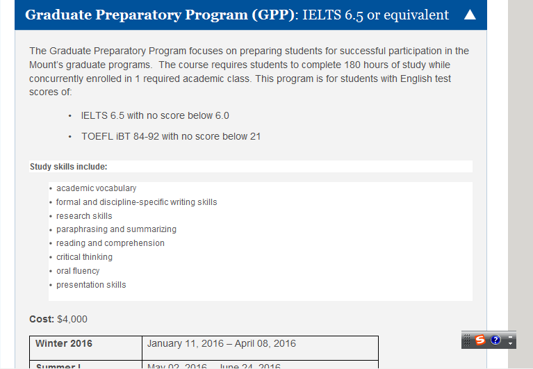 3 GPP 研究生预科:该课程主要是给准备读硕士的学生。要求学生已经有 6.5 雅思。共修 180 个学时英语和一个学分的专业课。
