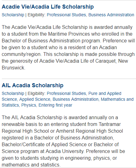 2019年,阿卡迪亚大学为各专业本科研究生提供超过100项的不同种类的奖学金,对于新生而言,大多数奖学金,是在申请过程中自动申请的,如果符合申请条件,且奖学金需要学生自己递交申请,那么大学也会给学生发邮件询问是否需要申请该项奖学金。