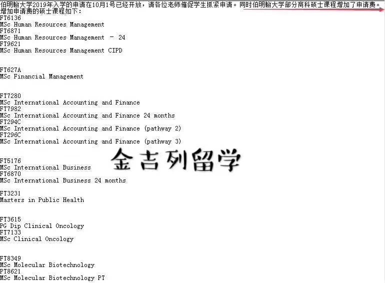 伯明翰大学 2019 年入学的申请在 10 月 1 号已经开放,准备去伯明翰的同学们要抓紧时间了。同时伯明翰大学部分商科硕士课程增加了申请费。各位同学们请准备好 Visa 卡和 Master 卡。
