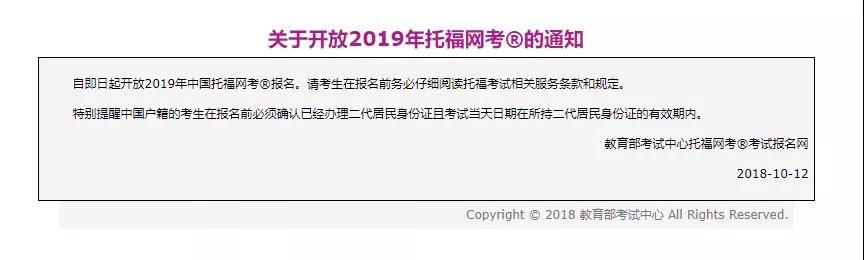 教育部托福考试中心发布最新官方消息,自即日起开放2019年中国托福网考报名。