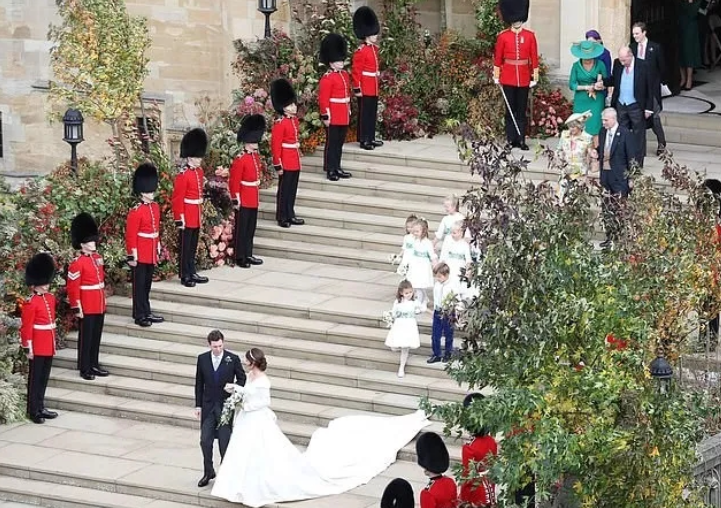 王室成员皆出席婚礼,男女傧相分别由新郎兄弟汤马斯及碧翠丝公主担任,威廉王子的儿女乔治王子和夏绿蒂公主也当花童。