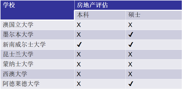 澳洲八大的房地产评估专业: