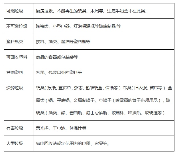 日本的垃圾大致分为以下 8 类: