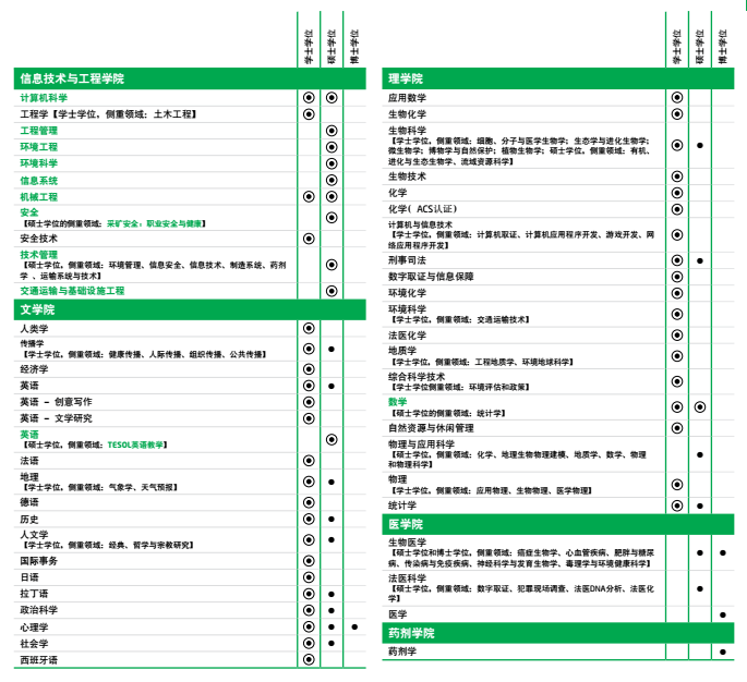 信息技术与工程师:计算机科学、工程学、环境科学、信息系统、机械工程、安全、技术管理。