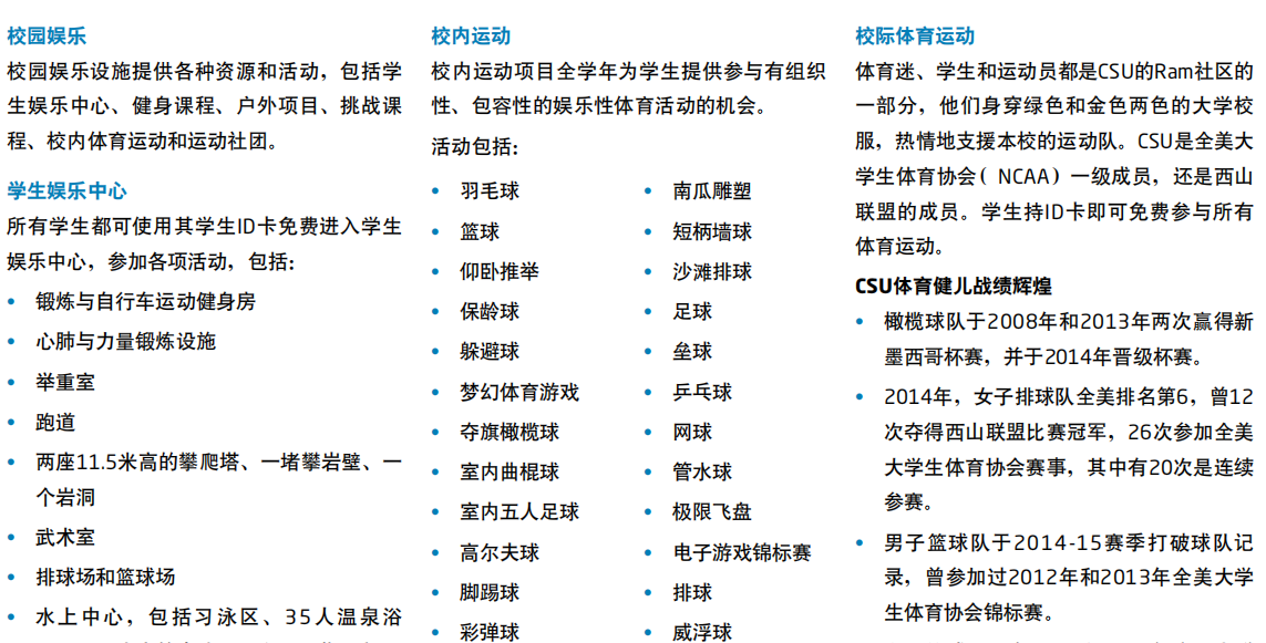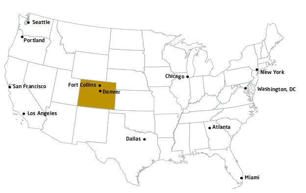 柯林斯堡坐落于落基山脉的山麓丘陵地带,海拔 1524 米,风景优美,娱乐机会众多。拥有 15.5 万人口的柯林斯堡有 600 多家餐厅、 300 多项活动、 90 多处公园和自然风景区,以及绵延 450 多公里的散步和自行车骑行游径。科罗拉多全年日照时间 300 多天,气候温和,年降雨量 37 厘米,冬季平均气温 7˚C ,夏季平均温度 30˚C 。