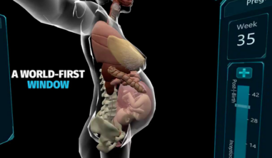 由纽大护理学院和科技创新部合作开发的孕期教学系统名为 Roa to Birth ,它从解剖学和循环系统的角度,通过三维影像详细呈现了妊娠期不同阶段婴儿发育及母体内部的细微变化,并附有不同胎位的介绍以及产科专家对于妊娠期不同阶段的讲解。