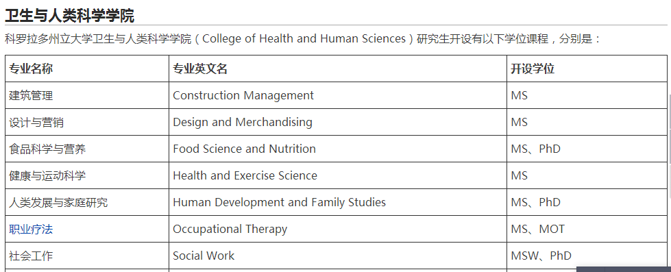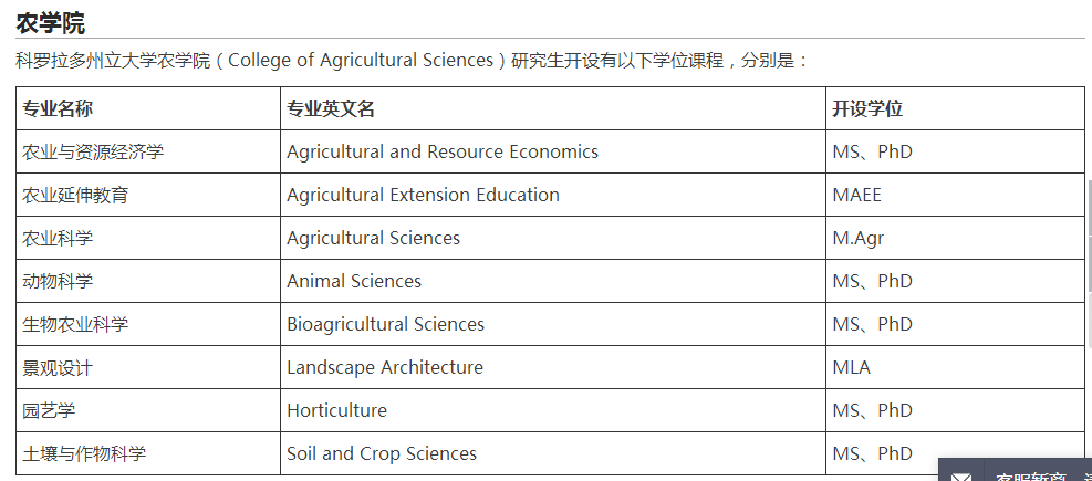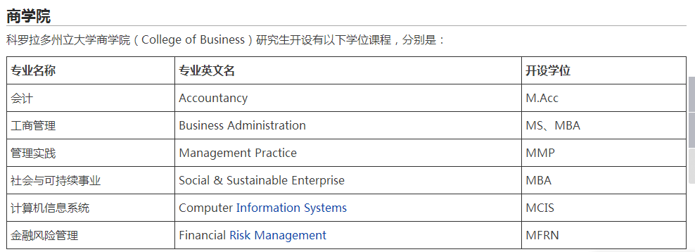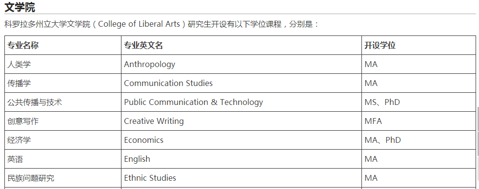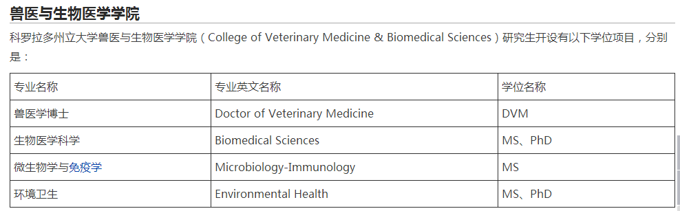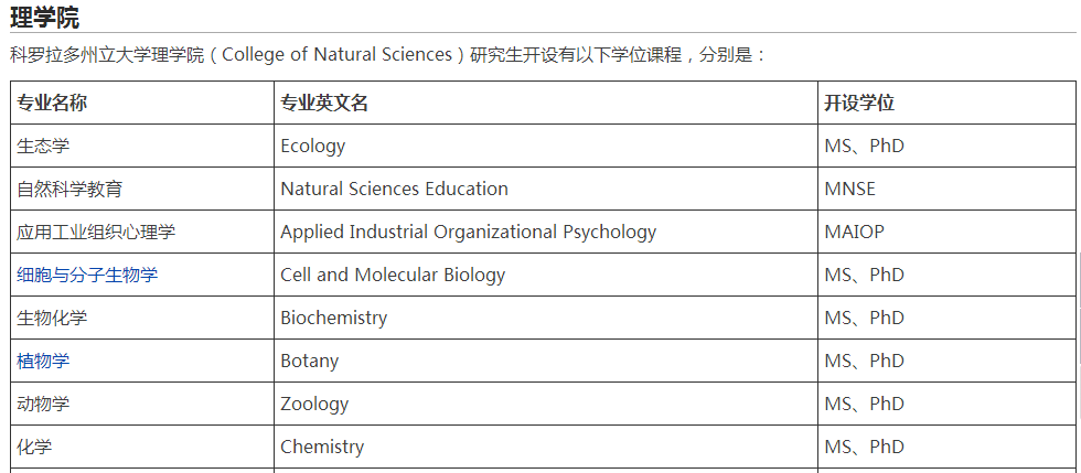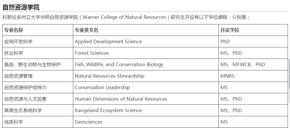 > 科罗拉多州立大学的热门专业