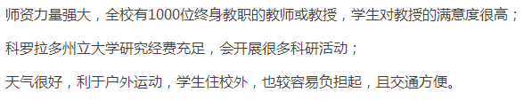科罗拉多州立大学设有八个学院, 55 个系,共约有 1540 名教师,其中 1000 名终身教职。