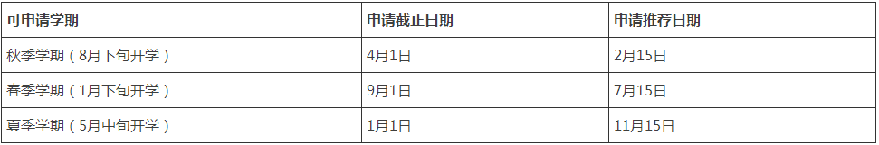 秋季学期建议不晚于3月1号申请;春季学期11月1号截止