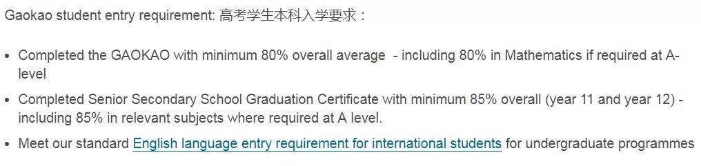高考成绩最低 80%-如有A-level数学要求的专业,数学成绩也要达到80%。