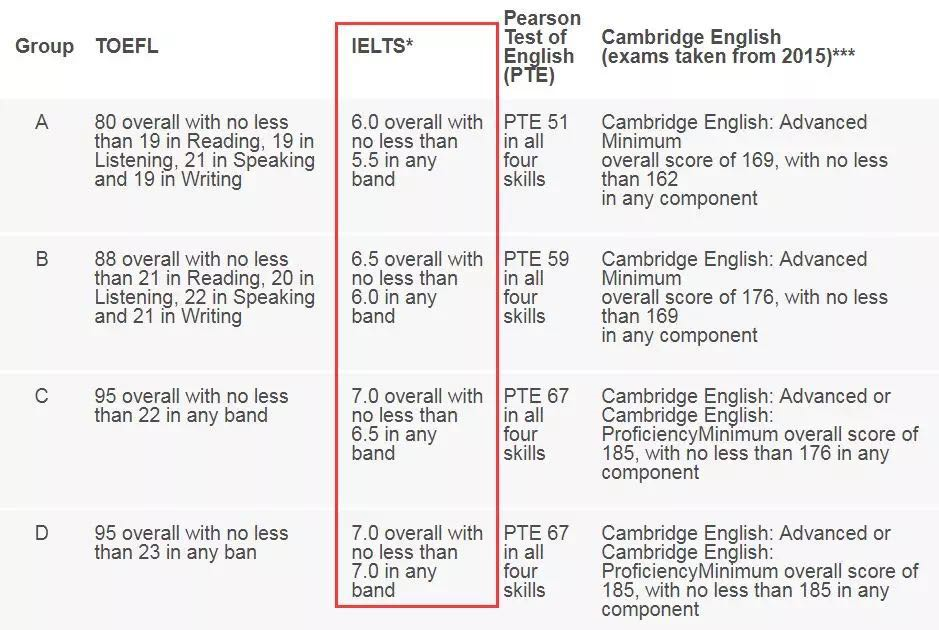 此外,还要满足语言条件,本科雅思最低总分 6.0-7.0,因专业而异。