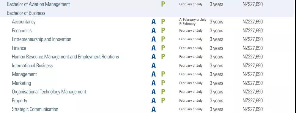 以上是一些常申商学院课程的基本信息,其中 A代表Aucklan校区、P代表Palmerston North校区、W代表Wellington校区,详细信息咨询 金吉利张娟老师,点我咨询!