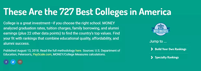 近日《Money》杂志在综合了美国教育部、 Peterson’s和PayScale的数据后,对727所美国大学的性价比进行了全面的分析对比,评选出了性价比最好的美国大学。毕竟留学也是一种消费,当然要考虑投入和产出啦,下面一起看看吧!