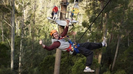 在塔斯马尼亚,在茂密树林中穿行的机会很多,但从树顶 “飞过”则是一种难得的体验。 Hollybanks Treetop Aventure 提供大概3小时的索道滑行项目,让你有机会从30米高空滑过,特殊视角带来前所未有的体验。当然,如果滑行对你来说太过刺激,历时2个小时的绳结攀爬课程也许更加合适,你可以学会如何在绳结编织的网上保持平衡,在半空中从容欣赏森林景色。
