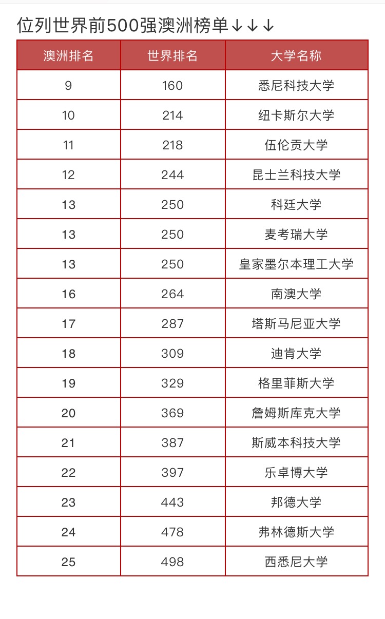 此次排名中,澳洲39所大学,其中有25所位列世界前500强,这25所大学世界排名提高显著