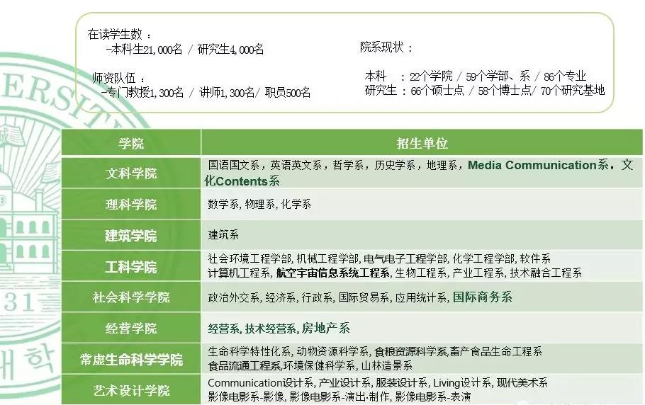 当然,除了这些充满人气的打卡地和众多的明星校友,最主要的是建国大学的专业也很强,有在韩国排名很高的专业,让我们来一起了解一下 ~