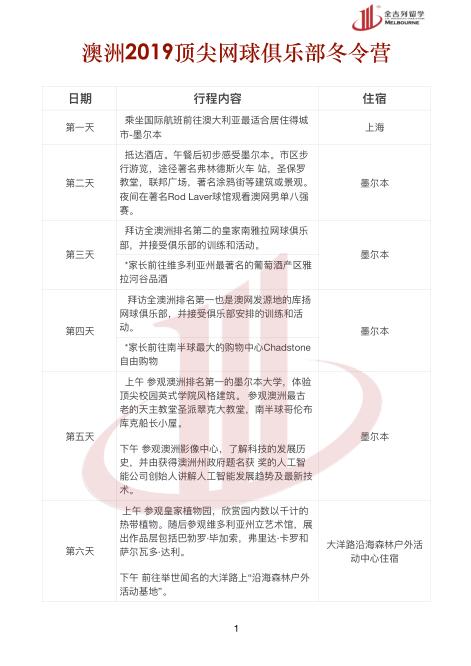 开始招募了,全球招募30个名额! 活动亮点:澳大利亚顶级配备,观看澳网八强赛,与顶级网球俱乐部交流,户外网球集训,游览墨尔本,包括机票住宿,可以与家长同行。家长们不会无聊,有专门给家长的活动哦 各位准备给孩子精英教育的家长,各位想去澳洲浏览考察环境的家长,快联系我吧!