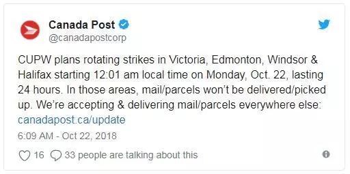 作为加拿大最主流的邮政公司,市民生活也会受到一定影响。