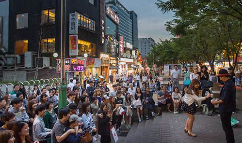 韩国年轻人常说起的 “弘大”不仅是“弘益大学”的简称,还代表了这里独特的文化范畴。弘大周边的大学街、购物街、文化街、酒吧街,早已被大众认可和喜爱,其名气源自于“弘益大学”本身的艺术气质与时尚氛围。作为韩国最具代表性的艺术大学,这里必然汇集着思想前卫,行为开放的艺术家,以及各类时尚设计师,他们在这里经营和维系着弘大文化,并吸引着韩国年轻人的追捧,这里常常是韩国年轻人感受现代时尚,品味艺术的场所,更是韩国人聚会娱乐的根据地。 夜店俱乐部是弘大文化的象征。在这里随处可见彻夜享受 Techno 、 Hip Hop 、 Aci jazz 、 R&B 等各式音乐,挥洒青春、狂欢娱乐的年轻人们。同时,标榜独立的乐队或活动于大众文化之外的地下音乐家们,在咖啡屋、酒吧或俱乐部进行的小规模的舞台演出,还向人们展示出弘大俱乐部文化的另一番独特景致 , 只需购买一张门票就可以自由活动于弘大各个俱乐部的 “ 俱乐部日 Club Day” (每月最后一周周五晚上 9 点 ~ 第二天凌晨 6 点),吸引着众多俱乐部迷们的到来。最近,慕名而来的外国人也在日益增多。每周五,周六的晚上 都 是弘大观光和旅游的最佳时间。