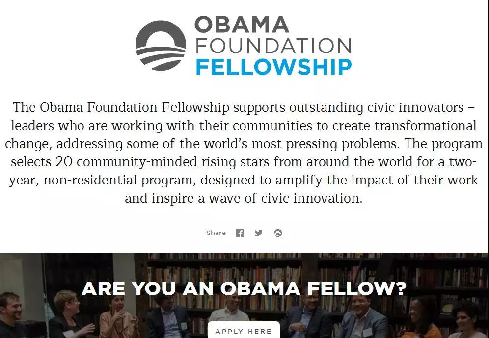 奥巴马基金会是由美国前任总统奥巴马设立,其助学金项目旨在支持来自世界各地的优秀文化创新者,以提高文化创新对人类的影响力。项目为期2年,提供第一手培训、资源共享及领导力培养等各种活动,支持各个文化领域的优秀人才申请,组织者、发明家、艺术家、创业者、记者等均可申请。申请者要求年满18周岁,国籍不限,英语流利,学历不限。