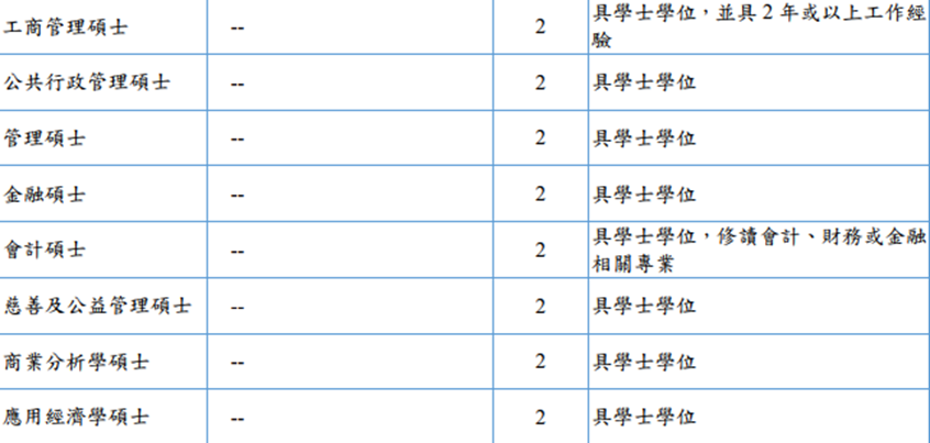 商学院研究生申请标准: