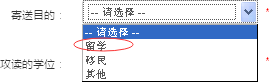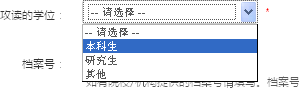 12、 按照实际申请情况,在 “攻读的学位”下拉菜单里选择