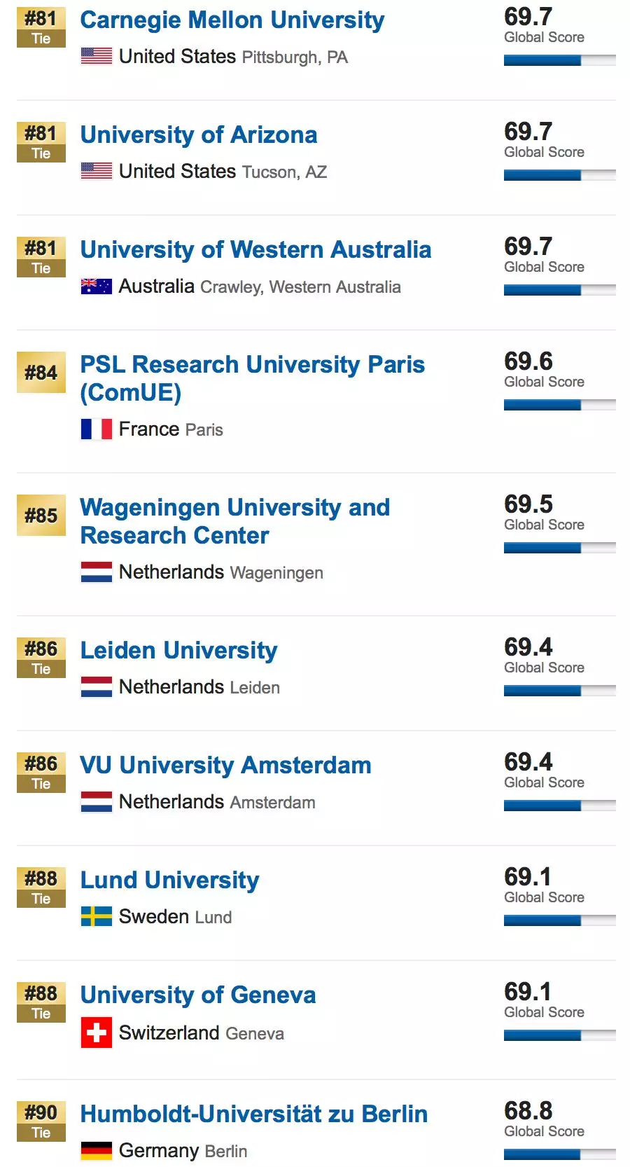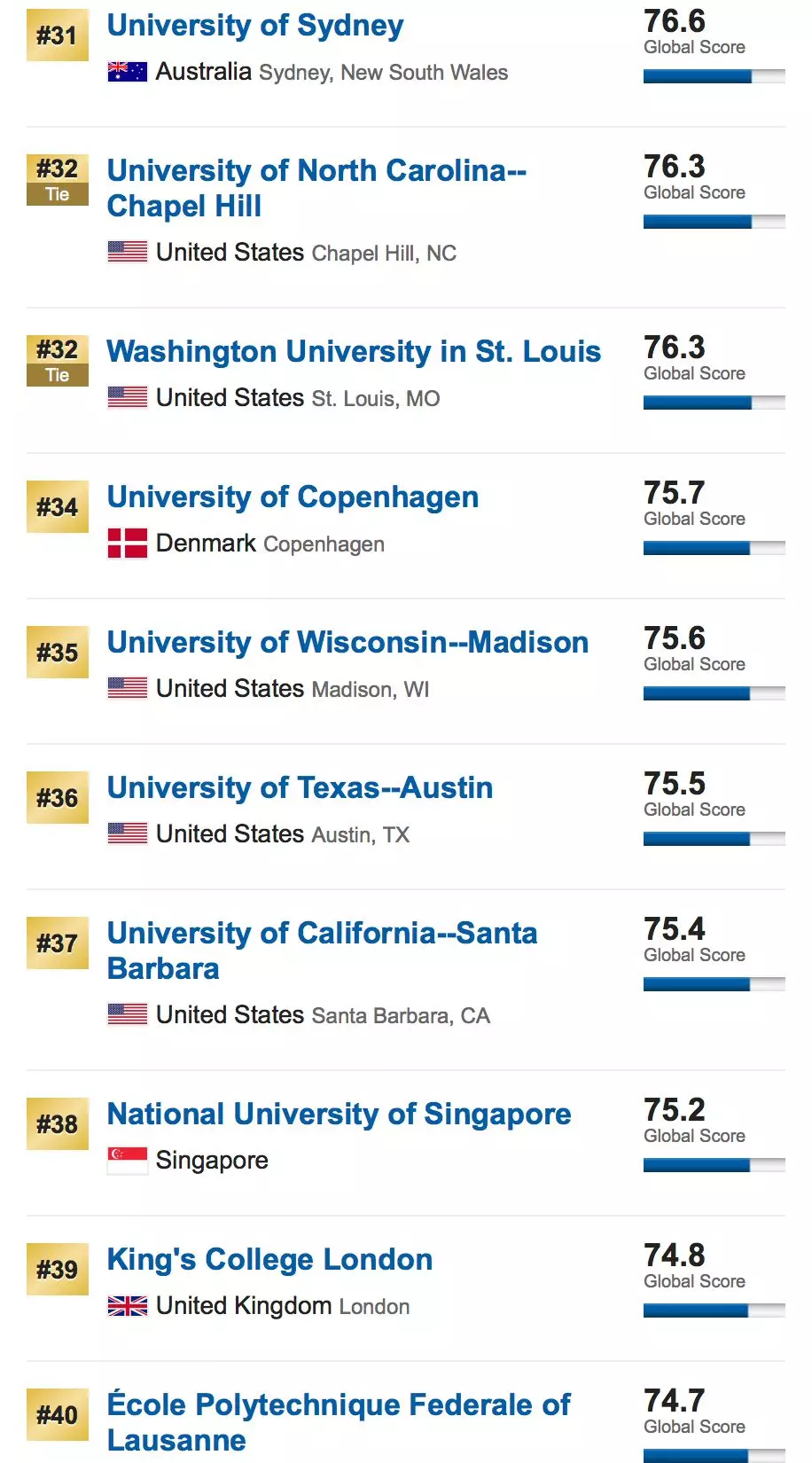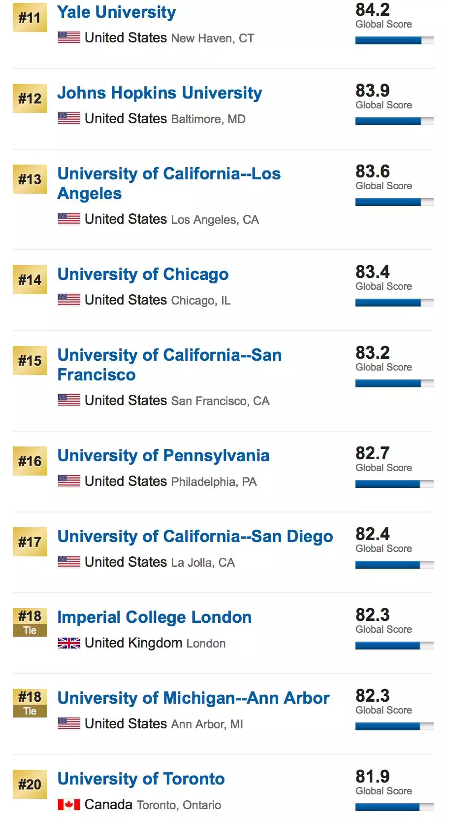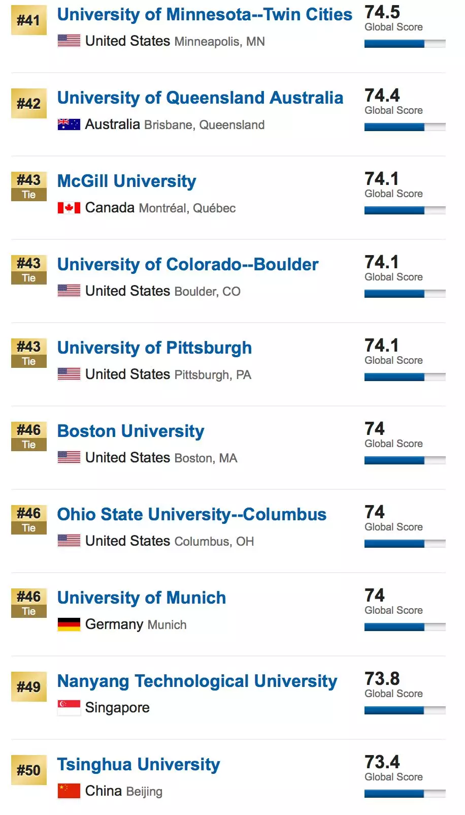 USNews的全球最佳大学排名致力于让人们了解那些全球顶尖学府在全球范围中的定位。它不仅对每个大学的本科及研究生教育水平进行整合,并对学校的学术研究与业界声誉做出准确且综合的评价。