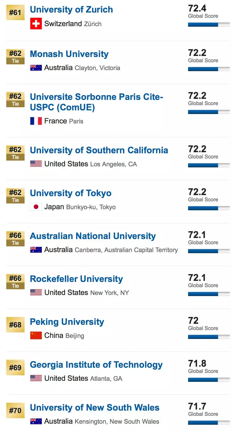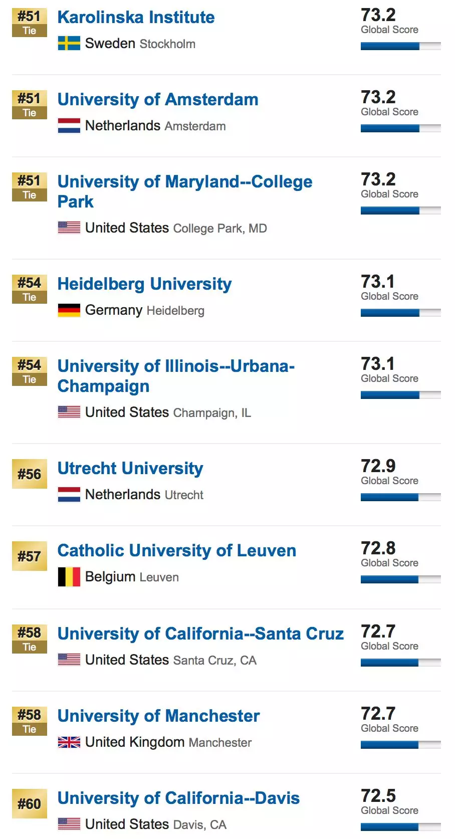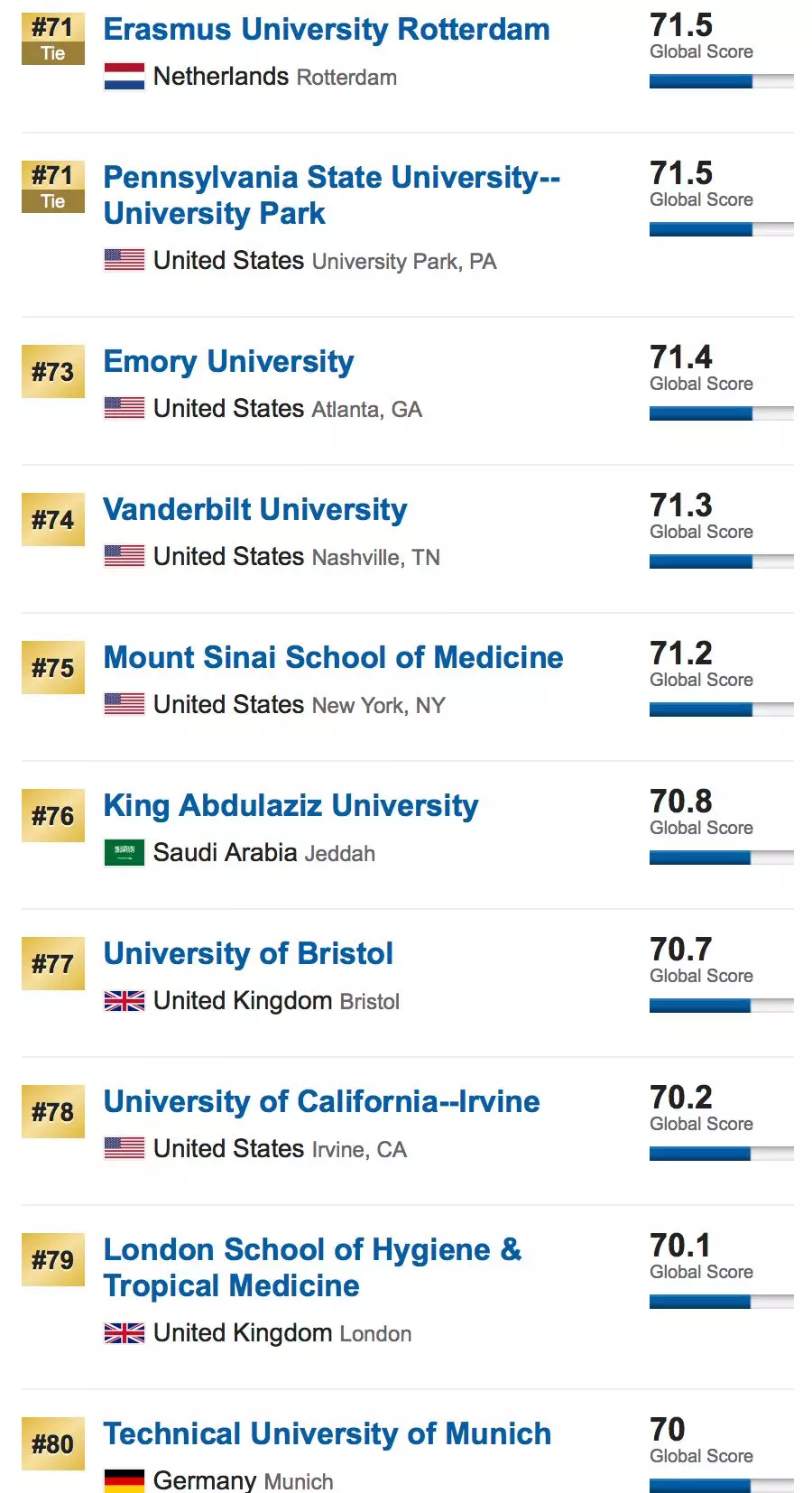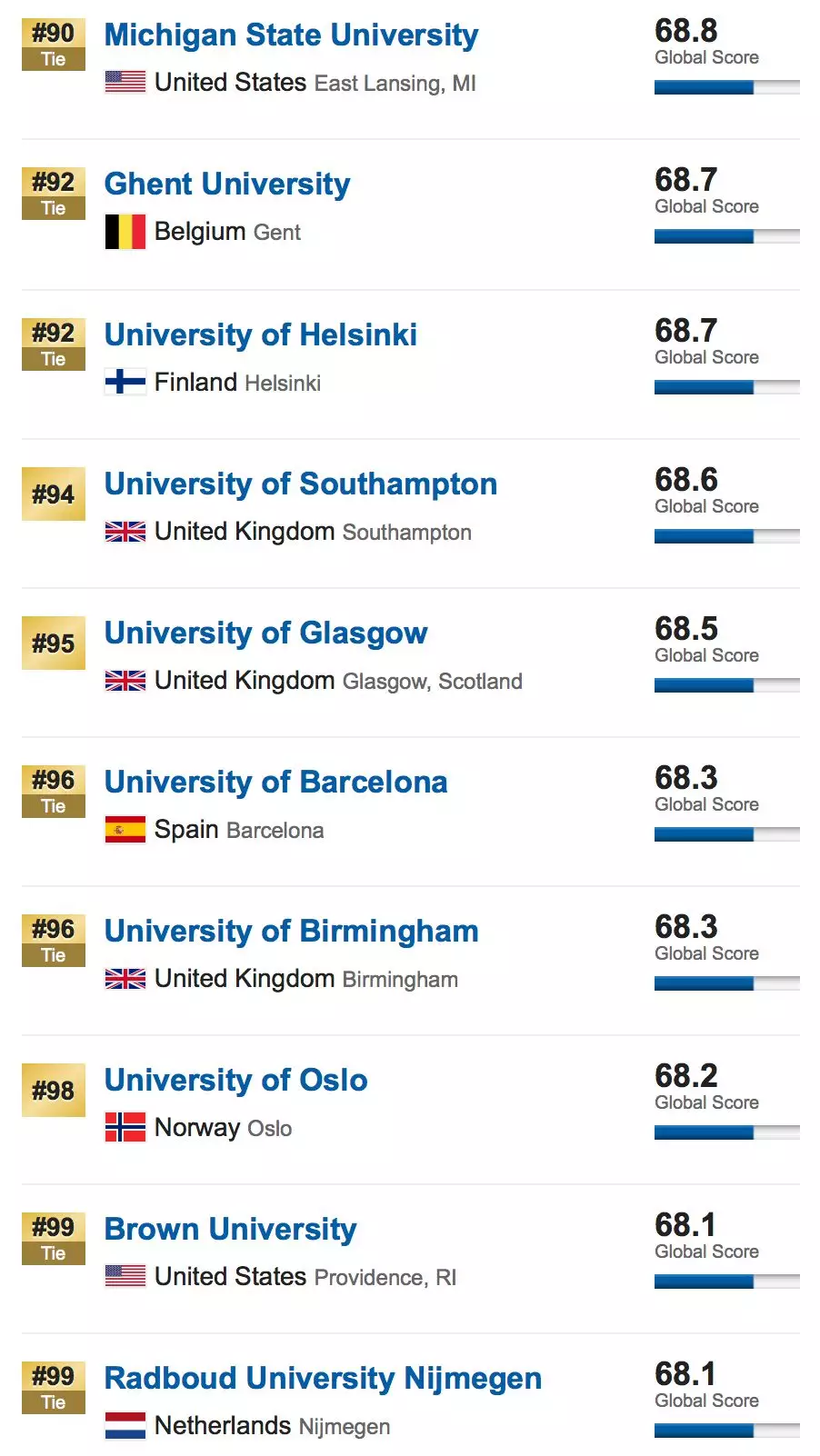 USNews的全球最佳大学排名致力于让人们了解那些全球顶尖学府在全球范围中的定位。它不仅对每个大学的本科及研究生教育水平进行整合,并对学校的学术研究与业界声誉做出准确且综合的评价。