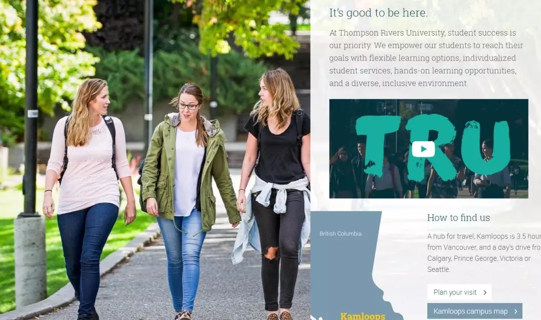 大学位于加拿大大不列颠哥伦比亚省坎路普斯市(又名甘露市),该城市具有浓厚的国际特色,有世界一流的滑雪场,划水场,高尔夫球场,所以旅游管理专业也是本科最具优势专业之一。