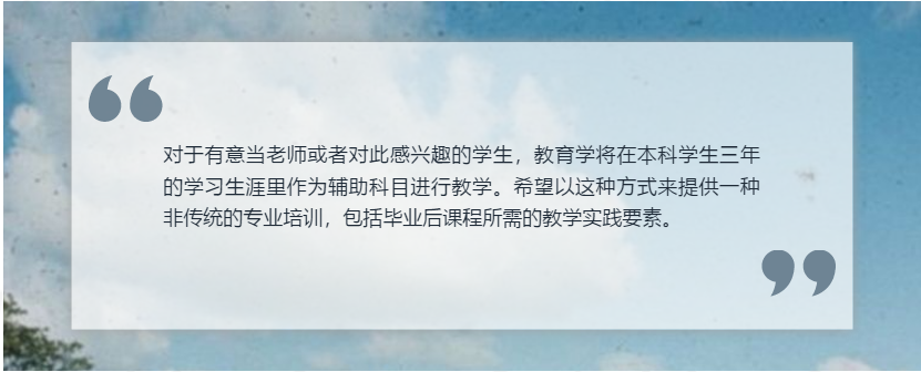 1963年,约克大学成立了。那个时候,教育学还只是英语、历史或者数学这些专业的辅助科目。当年出版的约克大学宣传册中,有一段介绍是这么讲的: