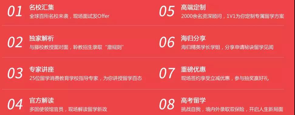 1、院校云集:全球百余所名校现场招生,当场面试赢offer;